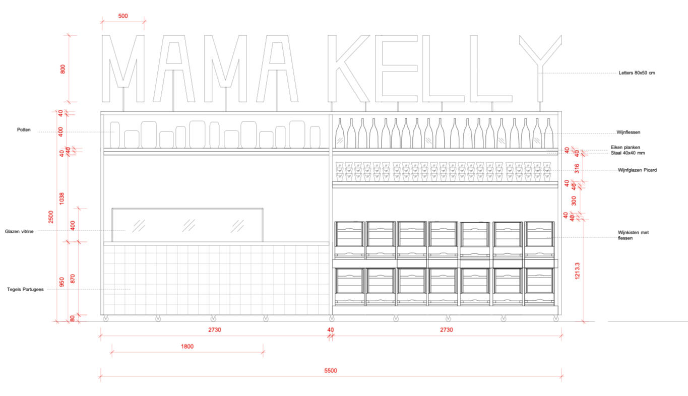 In opdracht tekende ik plattegronden voor deze grote Urban Bistro in Den Haag. Naast plattegronden tekende ik ook meerdere wandkasten en de bar met kenmerkende neon letters. Inmiddels is deze niet meer weg te denken uit het interieur.In opdracht van de horecafabriek. Alle foto's door MaMa Kelly.